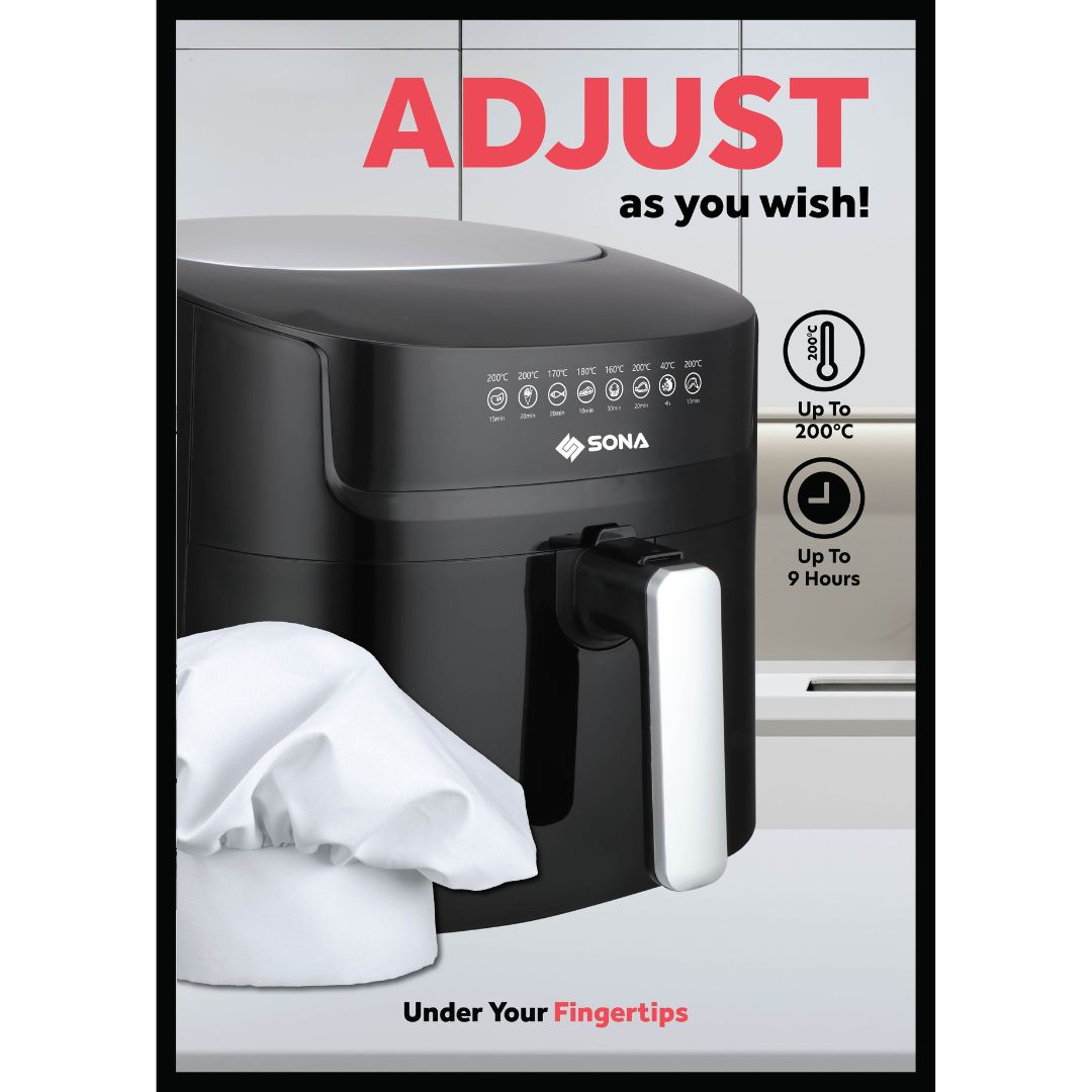 • 8 Cooking Modes – Meat Chop, Fries, Cake, Chicken Wings, Drum Sticks, Fish, Steak, Dehydrator