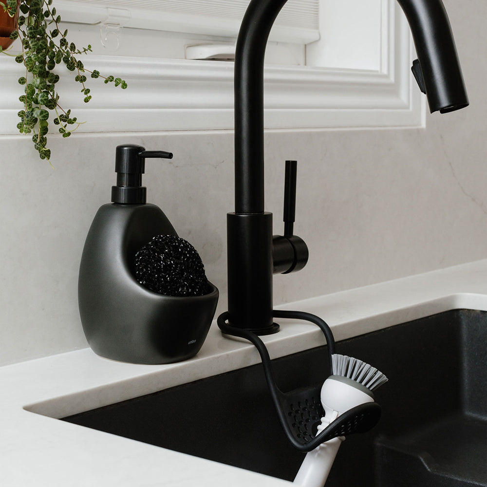 • CONVENIENT 2-in-1 SOLUTION: Joey kitchen soap pump is the perfect 2-in-1 solution for your sink zone — the built-in caddy keeps your favorite kitchen essentials like scrubby (included) and kitchen sponge neatly organized and easily accessible when needed.