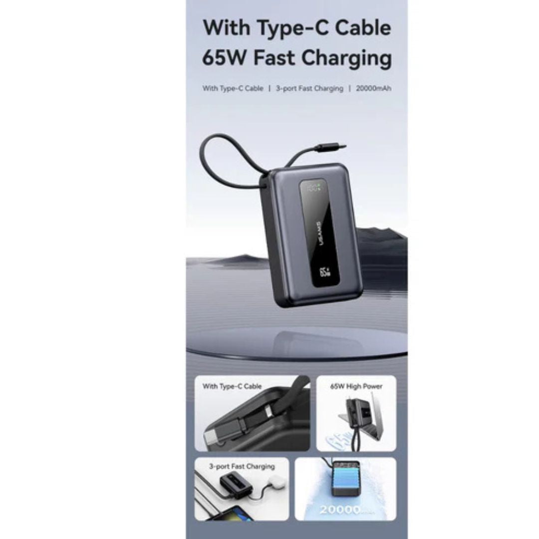 Upgrade your charging experience with the USAMS CD243 65W 3-Port Power Bank, designed for high-speed, multi-device charging on the go. With built-in cables, intelligent LED display, and universal compatibility, this power bank is perfect for travelers, professionals, and anyone needing reliable backup power for laptops, tablets, and smartphones.