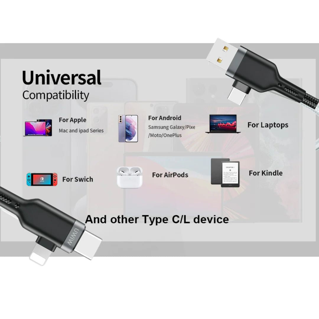• 4-in-1 Universal Design: Easily switch between USB-C to Lightning, USB-C to USB-C, USB-A to Lightning, and USB-A to USB-C connections—eliminating the need for multiple cables and adapters.