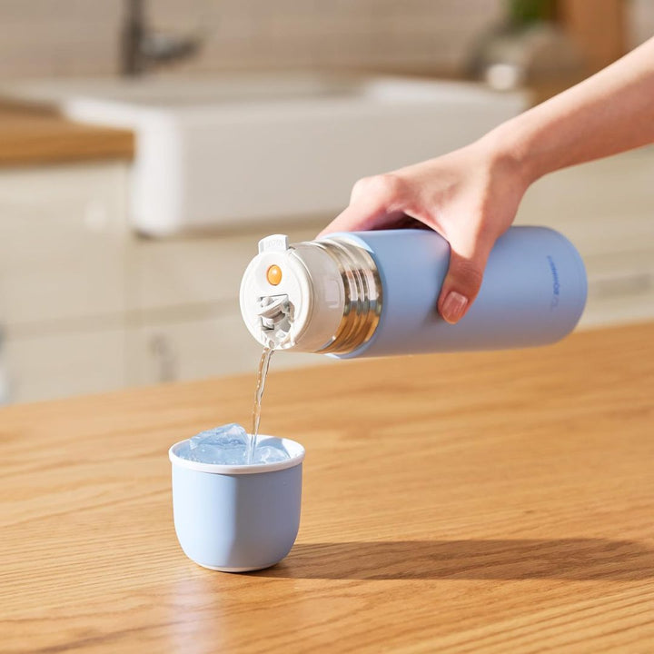 Lid conveniently turns into a cup, High quality vacuum insulation keeps beverages hot or cold for hours, One-touch button for easy pour operation, Wide mouth opening accommodates full size ice cubes and is easy to fill, Easy-to-clean nonstick coated interior, Made of BPA-free plastic and 18/8 stainless steel.