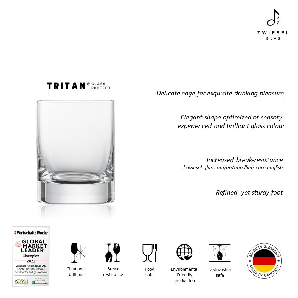 The Zwiesel Glas PARIS collection cocktail tumbler is made of patented break-resistant Tritan® crystal glass, it is especially brilliant. This means that the glass from the Paris series is protected from scratches and cracks - there is nothing to stop it being cleaned in the dishwasher. Drinks in Paris long drink glasses become even tastier when enjoyed with glass straws - equally stylish and sustainable. The Paris Cocktail Tumbler is a perfect fit for Old Fashioned, Negroni, Boulevardier, Sidecar, Daiquiri, Gimlet, Bee's Knees, French 75, Bramble, Moscow Mule, Whiskey Sour, Margarita, Mai Tai, Caipirinha, Pisco Sour, Zombie and Bloody Mary.